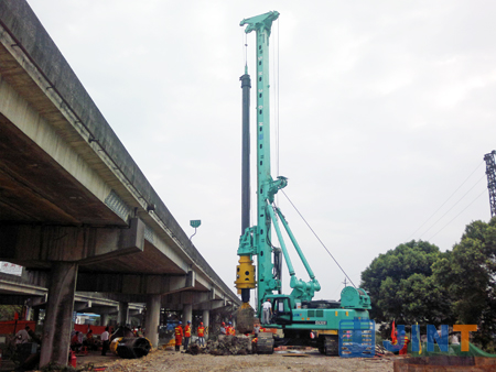 9月25日,在《廣州交通十二五規(guī)劃》征詢稿公布,被社會(huì)廣泛關(guān)注的廣清高速公路改擴(kuò)建工程被列入實(shí)施項(xiàng)目。次日,該工程花都段在擱置了近一年后,終于迎來了全面開工的盛大儀式。主導(dǎo)該工程樁基礎(chǔ)施工的上海金泰SH30旋挖鉆機(jī)在一片爆竹聲中打下了該工程的第一根“全護(hù)筒灌注樁”。