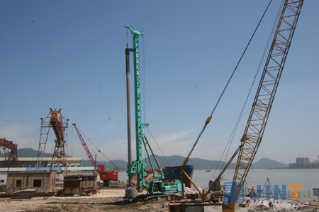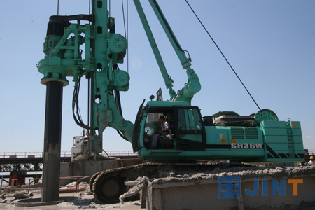 上海金泰公司自行研制的SH36W多功能鉆機(jī)目前在杭州之江大橋成功試鉆,7月11日已圓滿完成第一根77米深、1.8米口徑灌注樁施工。