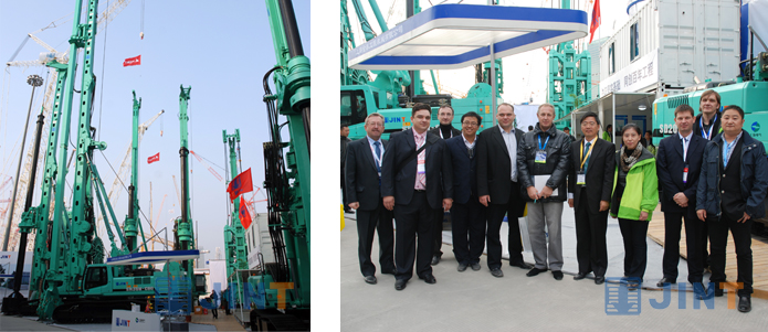 本屆展會,上海金泰展出的設備有:SH系列大三角結構旋挖鉆機,SD系列四連桿機構旋挖鉆機,開挖深度達到100米的SG60型地連墻抓斗,世界首創、鉆桿可伸縮、動力頭中置的M系列三軸鉆機以及使用CSM工法、適用于復雜地層C80液壓銑削攪拌機。 豐富多樣的產品吸引了100多位外商參觀金泰展位,他們分別來自俄羅斯、印度、巴西、土耳其、美國、澳大利亞、越南、埃及等國家。參觀過程中,世界領先的技術、完美的品質及有競爭力的價格激起了外國客戶強烈的購買意向,甚至還有一些外國客戶有意向作金泰產品在本國的經銷商。