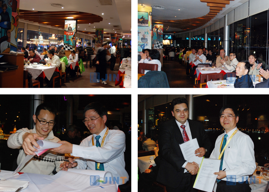 展會期間,上海金泰工程機械公司為答謝廣大國外客戶長期以來的支持,邀請國外客戶參加在外灘天水戀意大利餐廳舉辦的晚宴,餐廳晚宴上均是金泰的老客戶,借寶馬展這個東風,齊聚一堂,共同見證金泰公司的輝煌歷程。伴著和諧的音樂和璀璨的燈光,晚會達到高潮。當時有兩國客戶分別和金泰簽訂了合作意向書,為晚會增添光彩。