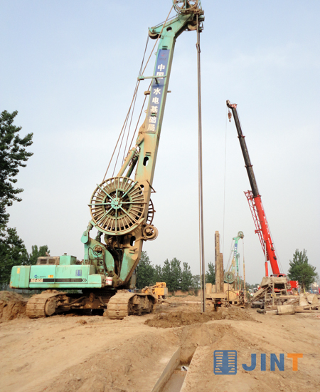 春夏時節中華民族先祖活動的重要地區的河南省鄭州市機器轟鳴,鑼鼓喧囂,隨著一臺臺連續墻液壓抓斗到場施工,“引黃灌溉龍湖調蓄工程”(以下簡稱“龍湖工程”)中的地下防滲墻工程已全面開展。鄭東新區——鄭州未來的商業文化住宅中心,迎來了前所未有的發展良機,作為鄭汴一體化的重要環節,整個中原地區均將目光匯聚于此,該工程竣工后,將與現在2000多畝的國家森林公園共同構成新的城市核心生態區。目前已有上海金泰工程機械有限公司多種規格包括SG22、SG35A、SG40A、SG46連續墻液壓抓斗28臺參與“龍湖工程”施工,整個防滲墻項目一半以上的工程均采用了金泰液壓抓斗,并得到了施工單位和甲方的一致認可。
