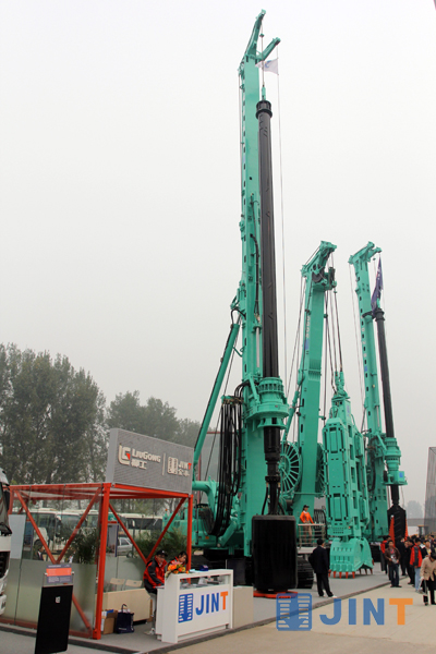 金泰致力于多功能旋挖鉆機的研發,實現工作裝置多樣化,今年展會上,金泰推出液壓抓斗旋轉裝置,這是一種可水平旋轉的抓斗、它包括導架體、設于導架體底部的斗體、設于導架體頂部的懸吊裝置。它在挖掘設備的使用中,能改變挖掘角度方向以及抓斗斗齒換向改變挖掘效果的需求,旋轉范圍實現0-180度,可按工程需要轉動,任意進行控制。使用靈活,克服場地環境局限影響,保證墻體的連續性及主機移動后產生的偏斜影響。配有羅盤方向傳感器監控。