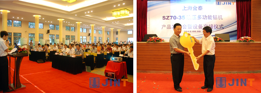 8月8日上午,來自工程機(jī)械行業(yè)的專家、媒體記者和上海金泰的標(biāo)桿客戶共同見證了首臺“SZ70-35液壓多功能鉆機(jī)”成功下線,與此同時產(chǎn)品新聞發(fā)布會和首臺設(shè)備客戶交接儀式在金泰廠區(qū)內(nèi)隆重舉行。