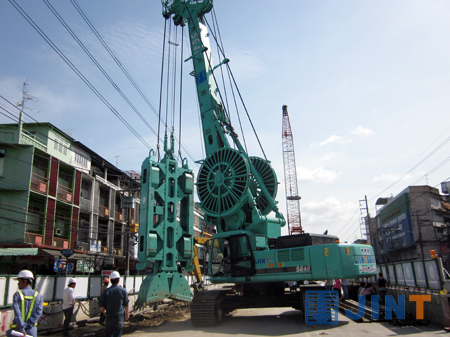 曼谷作為泰國(guó)的首都,交通擁堵已經(jīng)日益嚴(yán)重。道路改造已經(jīng)成為城市公共建設(shè)的主要部分。塔克辛街(Taksin Road)地下走廊工程,是這一系列道路改造計(jì)劃的開(kāi)始,該工程位于曼谷市中心塔克辛街,設(shè)計(jì)地下通道全長(zhǎng)1.214km。通道主體部分地下10m 位置,為了保持側(cè)墻的支護(hù)強(qiáng)度及同時(shí)完成防滲功能,施工方案采取了液壓連續(xù)墻抓斗施工工藝,這是泰國(guó)首次在公共建設(shè)中使用該種工藝。