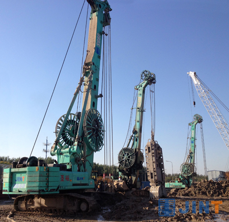 SG抓斗在南水北調工程中擔當“主角”絕非第一次:早在中線的漢江樞紐工程期間,就有32臺金泰的抓斗承擔了25萬方圍堰防滲的施工任務,占總工量的95%,壯觀的場景令業界嘆為觀止;禹州的長葛段內多為膨脹土地層,為克服膨脹土明渠渠坡處理這一世界性難題,施工單位專門選用了金泰的SG系列抓斗直抓成方槽,在采取泥漿護壁后,將鋼筋籠整體一次性吊裝入井,再通過水下直升導管法進行混凝土澆筑成樁,此種工法在該標段取得了創新性的成效。