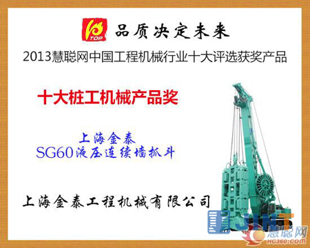上海金泰SG60液壓連續墻抓斗榮登2013年中國工程機械行業十大評選活動的“十大樁工機械產品”榜單。