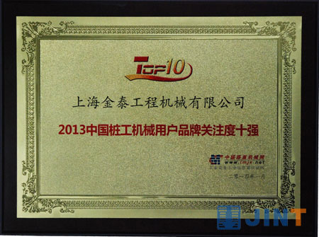 近日,中國路面機械網(wǎng)在北京隆重發(fā)布了《2013中國樁工機械用戶品牌關(guān)注度TOP10排行榜》,上海金泰榮膺該榜單,這是上海金泰連續(xù)第三年獲此殊榮。