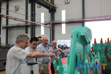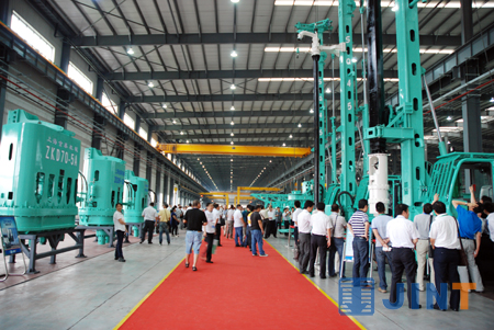 在主題會議上,上海金泰工程機械有限公司總經理林堅全面深刻地詮釋了本屆展示會“持續創新,合作共贏”的主題內涵;金泰營銷公司及研發部門的骨干人員分別對新產品做了主題講解;展示會期間,組織與會嘉賓參觀了上海金泰及其子公司上探公司的生產基地。