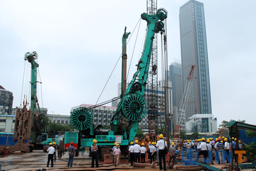 2014年9月18日,上海金泰SX40雙輪銑工程應(yīng)用技術(shù)交流會在南昌舉行,來自全國各地基礎(chǔ)施工領(lǐng)域從事地下連續(xù)墻工程的50多位專業(yè)企業(yè)老總聚首南昌城,冒雨觀看了SX40雙輪銑在南昌地鐵二號線過江隧道工程中的施工情況,共同見證了由國內(nèi)首家企業(yè)自主研發(fā)的雙輪銑槽機(jī)的風(fēng)采。
