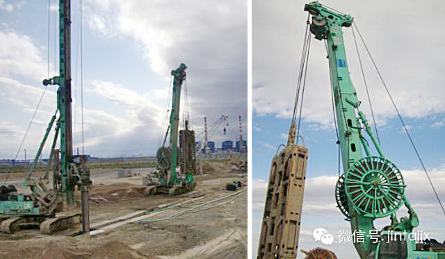 位于哈密伊吾縣淖毛湖鎮(zhèn)境內(nèi)的新疆廣匯能源有限公司120萬噸甲醛/80萬噸二甲醚項目占地面積為100公頃,總投資額近70億元,是新疆“十二五”期間重點投資項目。該項目配套設(shè)施之一的地下水污染防治工程防滲處理采用的是地下連續(xù)墻施工工藝。資料顯示,防滲墻墻體總長超過3200米,成槽開挖土方近14萬立方米,地連墻槽寬0.8米,槽深19.5-34.5米不等,地層以砂層、卵石層和砂巖層為主。由于地質(zhì)結(jié)構(gòu)較為復(fù)雜,巖層、卵石分布不均,在硬巖地層單以抓斗取土成槽無法滿足施工進度。為此,施工方采用SD/SH旋挖鉆進引孔,隨后在一般地層以SG抓斗取土直接成槽、如遇較硬砂巖則以DX800單論銑槽機對巖層進行銑削、氣舉排渣成槽的組合工法施工。