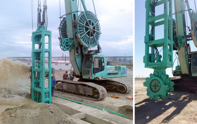 哈密是新疆維吾爾自治區(qū)的“東大門”,素有“西域咽喉,東西孔道”之稱,也是國家“一帶一路”西進戰(zhàn)略的重要節(jié)點。日前,八臺SG地連墻抓斗、三臺DX單輪銑槽機、二臺SD/SH多功能鉆機組成的上海金泰樁工機械“戰(zhàn)隊”現(xiàn)身新疆哈密淖毛湖地區(qū),為新疆廣匯能源有限公司120萬噸甲醛/80萬噸二甲醚項目的配套工程——地下水污染防治項目助戰(zhàn)立威。上海金泰的SG抓斗、SD/SH多功能鉆機等主流產(chǎn)品與最新研制的“定制化”產(chǎn)品——DX800單論銑槽機同臺競技、默契配合,再次譜寫金泰多系列裝備的協(xié)同工藝發(fā)揮威力的經(jīng)典案例。