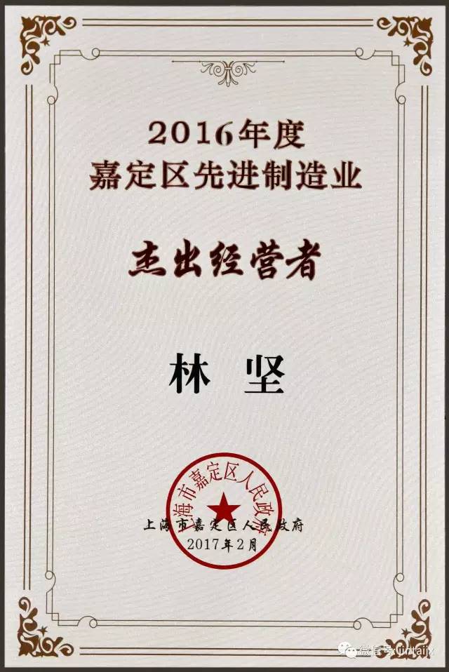 日前,上海市嘉定區召開2016年度區內優秀企業表彰大會,表彰區內一批產業發展先進單位和個人。上海金泰工程機械有限公司榮獲“2016年度嘉定區先進制造業綜合實力”金獎,總經理林堅榮獲“2016年度嘉定區先進制造業杰出經營者”稱號,這是自2010年以來上海金泰第六年獲得該項榮譽。
