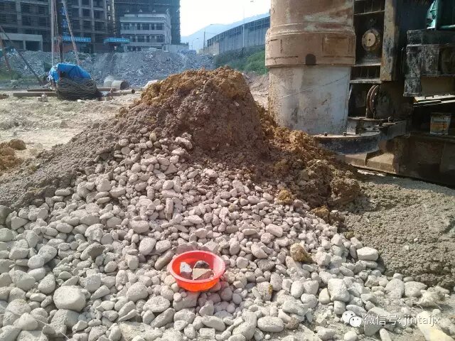 地勘報告顯示,素填土層中底部有較早拋填的大塊花崗巖,粒徑在0.5~2.0mm不等。除此之外,在②-2的卵石層的卵石密度達到密實級,含量50~60%,一般粒徑為20~100mm,最大達400mm,亞圓形為主,分選性較差,質(zhì)地堅硬,母巖成分為凝灰?guī)r、花崗巖等,中~微風化為主,充填物為砂礫及粘性土,無膠結(jié),鉆探中孔壁易塌。