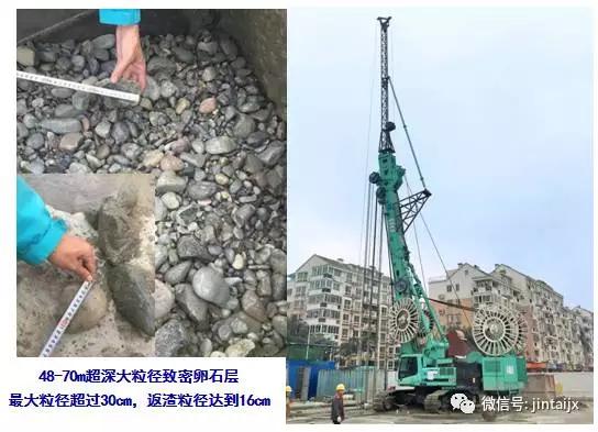 2016年12月——武漢軌道交通七號(hào)線八標(biāo)段武昌工作井專項(xiàng)地連墻工程。上海金泰與隧道股份“強(qiáng)強(qiáng)聯(lián)手”,SX40與SG60A“雙機(jī)合璧”,入巖深度10米以上,并成功穿透46MPa中風(fēng)化膠結(jié)礫巖。