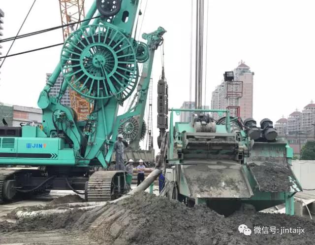 2014年9月——南昌地鐵2號(hào)線過(guò)江隧道中間風(fēng)井地連墻工程。槽寬 800mm、槽深35.5m,有近20米厚的中風(fēng)化粉質(zhì)泥巖,抗壓強(qiáng)度在30MPa左右。金泰三大主流系列產(chǎn)品組合上陣、無(wú)縫接力——SH30H旋挖鉆機(jī)引孔、SG60液壓抓斗抓槽至15米深,由SX40銑削到底。SX40在歷史名城南昌再次創(chuàng)造了經(jīng)典案例。