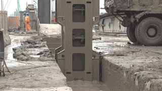 該地段地層條件如下,地面以下0~26米為土層、26~48米為細砂層、48~50米為鐵板沙層、50~52米為卵石層、52~65米卵石夾砂層、65~70米為砂層、70~76米為巖層。此項目地下連續(xù)墻深度為76米、厚為1.2米。據(jù)現(xiàn)場工作人員反饋,9月10日SG90第一次試抓直接抓到72米入巖2米,耗時17小時,之后在不同工況下,深度為50米左右的槽平均耗時5.5小時完成,其中一鍵抓槽功能與手持操作效率相持平,解放雙手的同時保證成墻質量。目前該設備與金泰雙輪銑“抓銑結合”已完成11幅厚為1.2米、長為7.2米的地連墻,較同場設備整體效率提升將近30%左右。同時該設備已運行1000多小時,始終表現(xiàn)穩(wěn)定可靠、特別是入巖能力強,提升和下放速度快,施工效率高,為期參加施工的項目提供了強有力的保障。