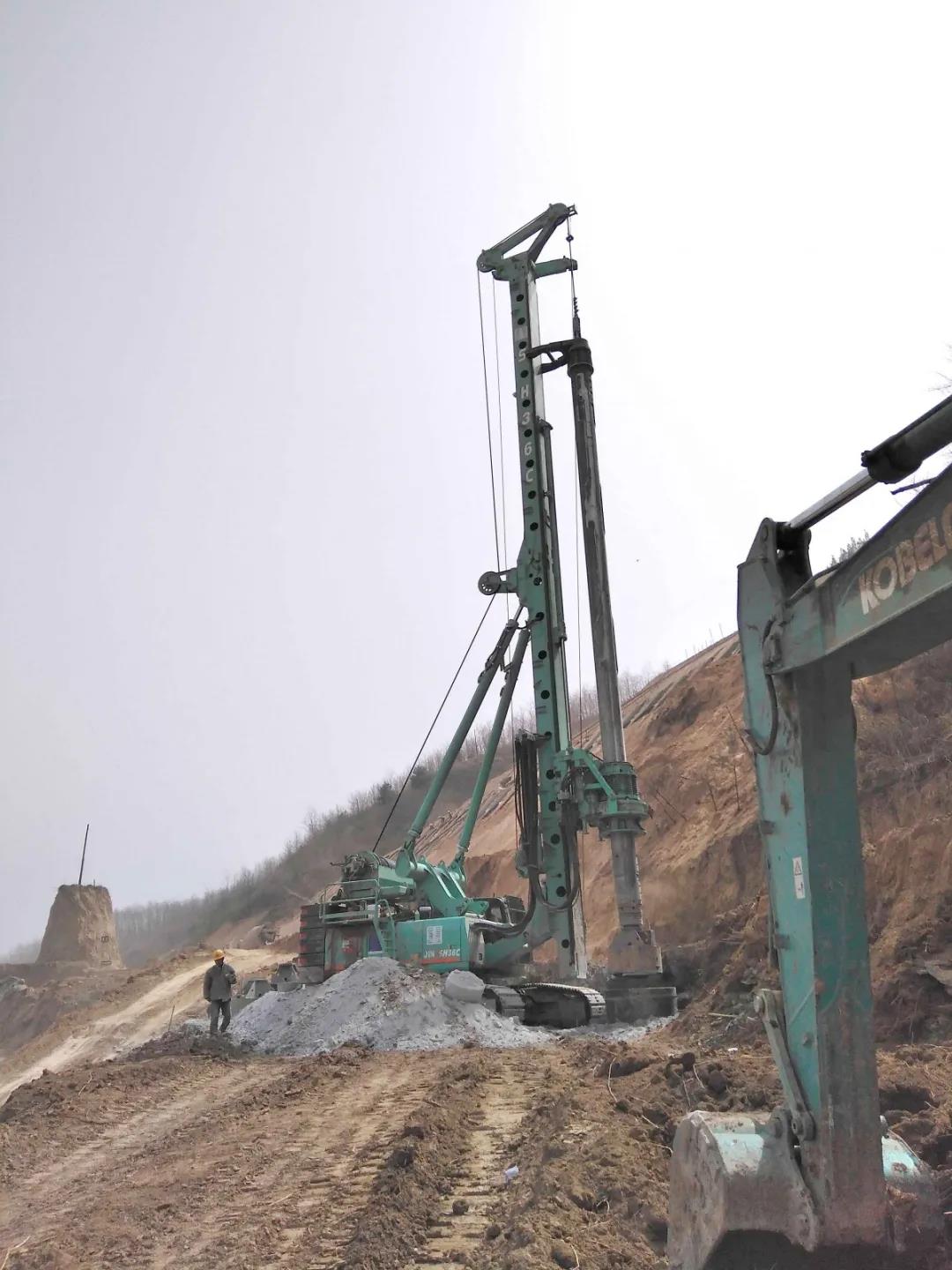 施工樁深:孔深37.5米,護(hù)筒跟進(jìn)16米