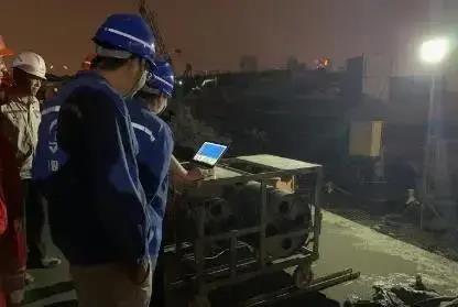 該工地48M以下均為沙層,適合金泰SG70抓斗直接成槽,目前SG70在場施工穩定、效率高,平均2天可完成一副槽。上海隧道工程有限公司閔永良項目團隊將金泰SG70成槽的20m/40m/66m深度進行多次超聲波檢測,將地下連續墻垂直精度控制在了1/1000以內。該項目團隊還使用了由上海工匠王峰研制的反力箱引拔器,降低了反力箱起拔過程中的安全隱患,提高了起拔成功率。