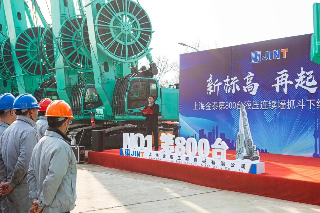 1月21日上午,微雨初歇、春意漸濃。以“新標高,再啟航”為主題的上海金泰第800臺液壓連續墻抓斗下線儀式在金泰本部舉辦。根據疫情防控要求,下線儀式未邀請外部用戶,也沒有組織大規模的聚集活動,由公司總經理黎隸萬、黨委書記陳雪英、公司高級顧問林堅、公司董事、副總經理兼營銷公司總經理徐峰、紀委書記工會主席陳月萍等公司領導帶領各條線負責人以及部分一線員工在金泰產品展示廣場共同見證了金泰第800臺抓斗下線及交付過程,整場儀式既簡約又隆重。
