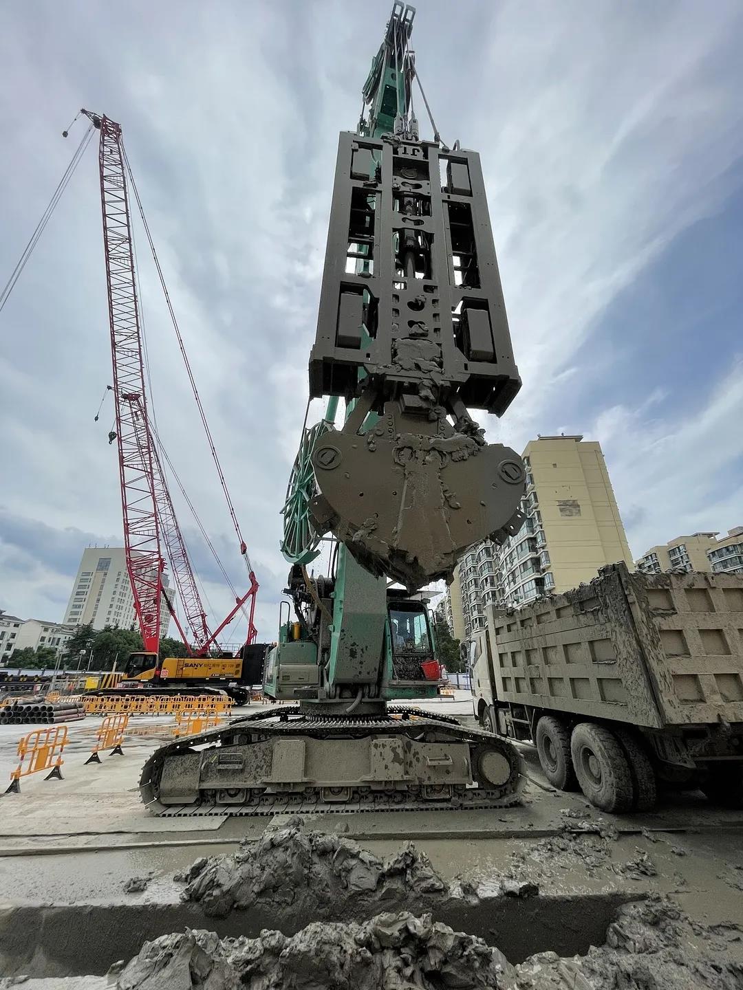 因為篇幅關(guān)系小編就不一一例舉了,在7好號線楊東路站的附近另有兩個站頭由金泰SG50B與SG60抓斗正在施工。
