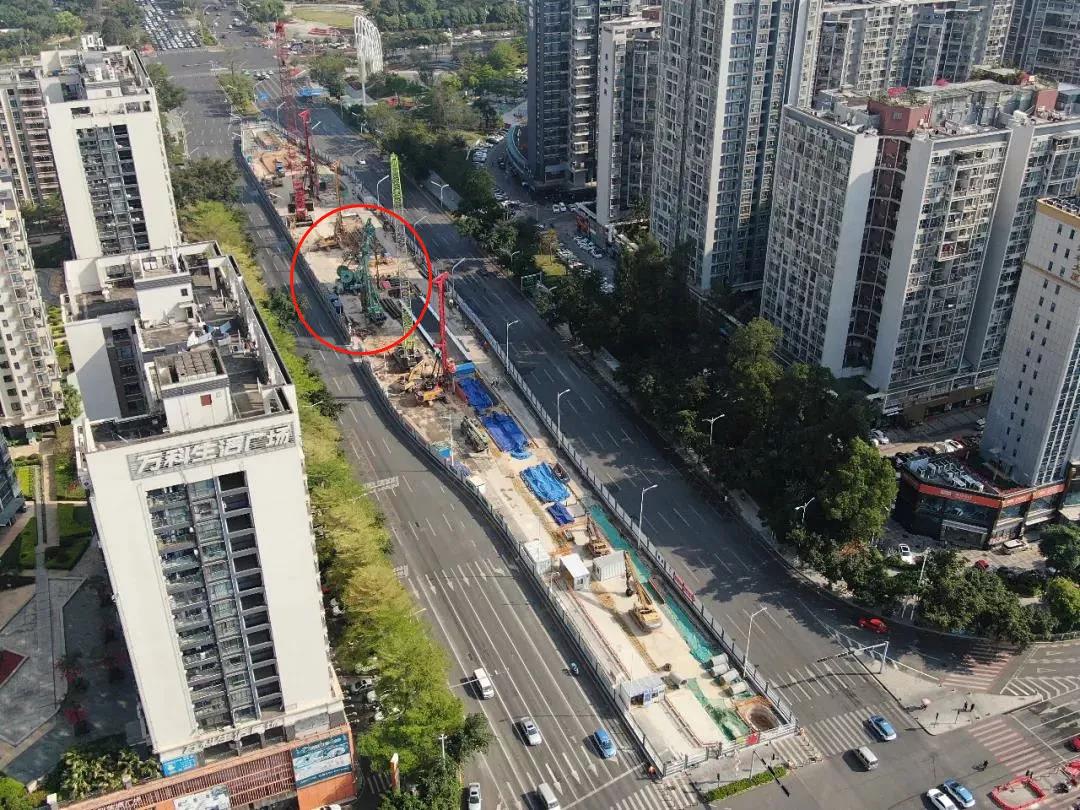 小編在車流如織的寶安大道上看到,僅有3車道,如此狹窄的施工作業面上,將建起一座粵港澳大灣區城際鐵路的三線換乘車站,無異于“螺螄殼里做道場”,難上加難。但是,項目的業主單位和參建者克服種種困難,在盡量不影響交通的情況下快馬加鞭搞建設。