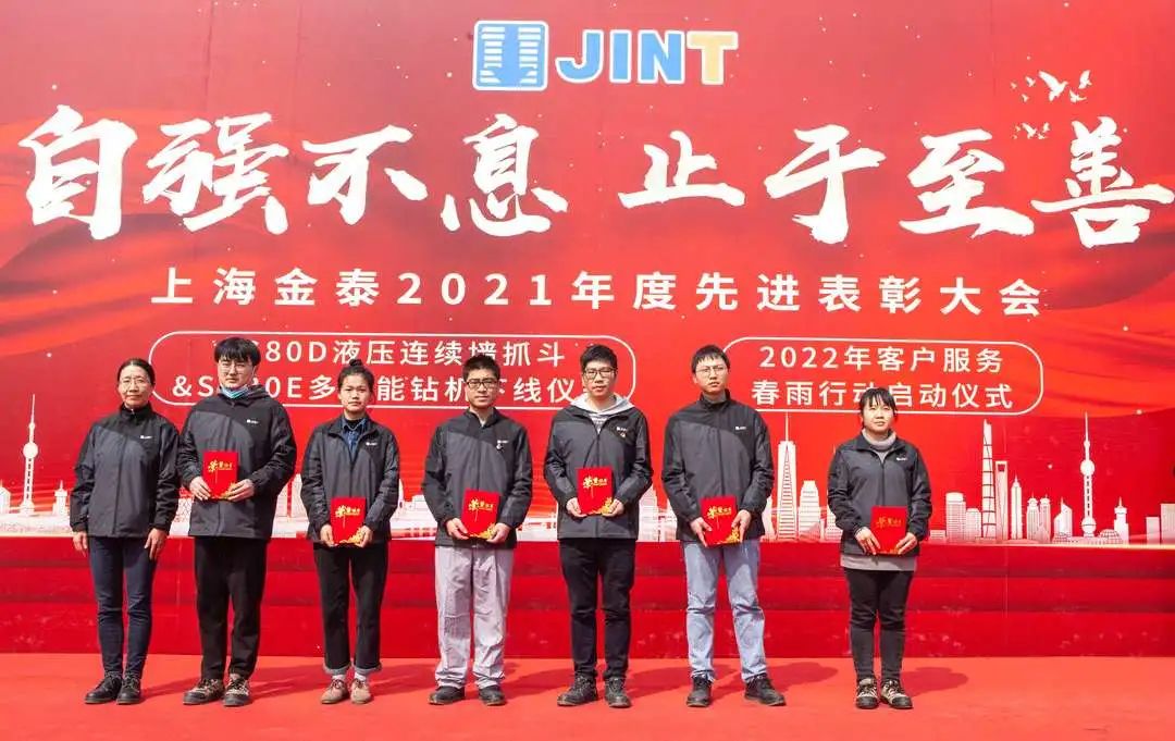 “下線!”“出發!”“勵志!” 3月2日,上海金泰SG80D液壓連續墻抓斗與SD30E多功能鉆機下線、2022年客戶服務春雨行動啟動儀式暨2021年度公司總結表彰大會隆重舉行。