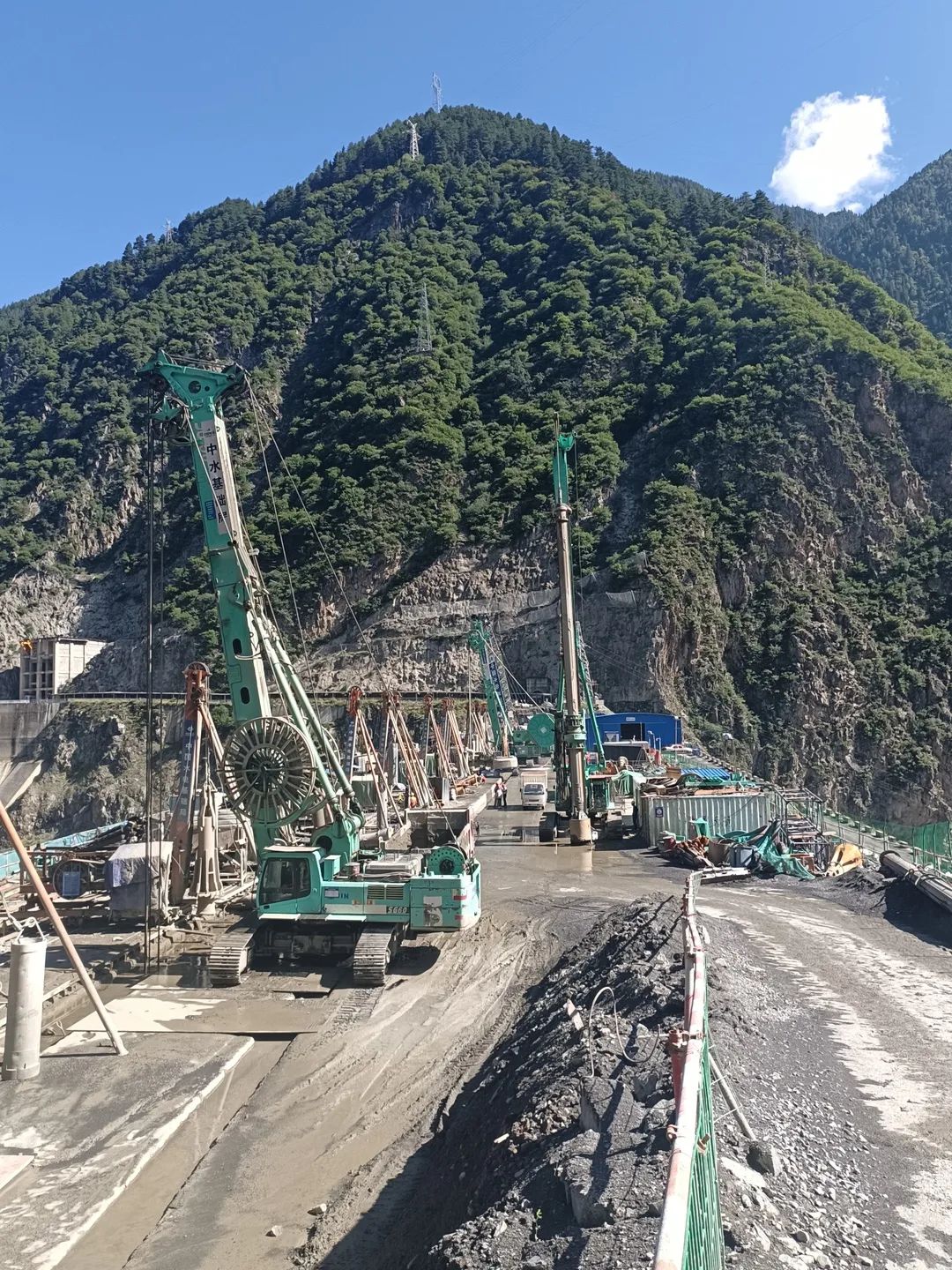 言歸正傳!近日,由中國水電基礎(chǔ)局有限公司所承建的獅子坪水電站上正在進(jìn)行一臺(tái)高壩“心臟移植手術(shù)”,現(xiàn)場緊張且忙碌。金泰主力產(chǎn)品SX雙輪銑、SG液壓抓斗、SH旋挖鉆機(jī)等設(shè)備一字排開,為確保“手術(shù)”進(jìn)度,現(xiàn)場工作人員以及施工裝備披星戴月24小時(shí)不間斷施工,預(yù)計(jì)2022年10月大壩將重獲“心”生,一顆嶄新、堅(jiān)實(shí)的“心臟”將守護(hù)大壩安全。